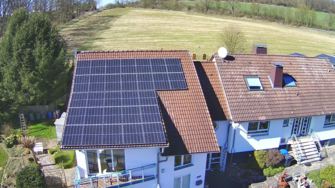 In den letzten Jahren hat Familie Queckbörner ihr Haus saniert und unter anderem auch das Dach erneuert. Nunmehr stand der Installation einer eigenen Photovoltaikanlage nichts mehr im Wege. Der ökologische Nutzen war die entscheidende Motivation beim Kauf der Anlage.1 Wechselrichter der Firma Huawei ( 10 KW ) | 1 Huawei Batterie-Turm mit 10 KWh | Die Anlage hat eine Größe von 12,615 KWp bestehend aus Trina Solar Glas/Glas PV Modulen